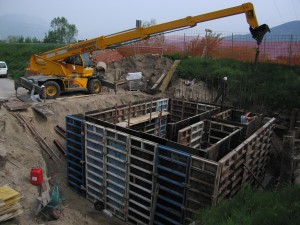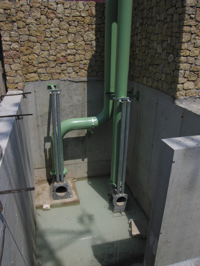 Rifacimento dell'impianto di sollevamento, con l'allargamento della vasca, così da renderla idonea ad accogliere due pompe, una da 200 l/sec ed una da 400 l/sec, nonché a consentire l'installazione di un piccolo sgrigliatore per evitare la possibilità di intasamento delle pompe. Il pompaggio avviene in un torrino di carico ad un livello sopra la sommità dell'argine da cui l’acqua defluisce per gravità .